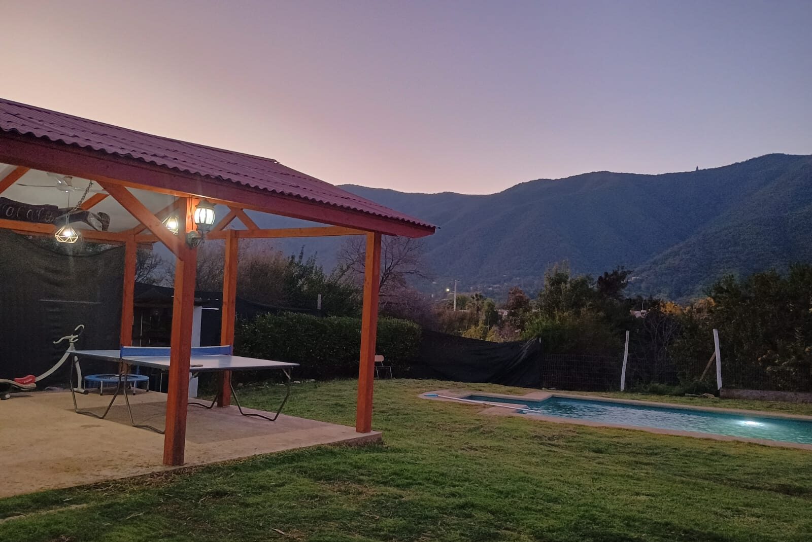La cabaña cuenta con una variedad de servicios pensados para tu confort y disfrute. Puedes relajarte en nuestras piscinas al aire libre, disfrutar de una noche especial en el quincho o el fogón, y revitalizarte en la tinaja mientras te rodeas de la belleza natural de Olmué, como también renovar energía en nuestra cama de cuarzo.